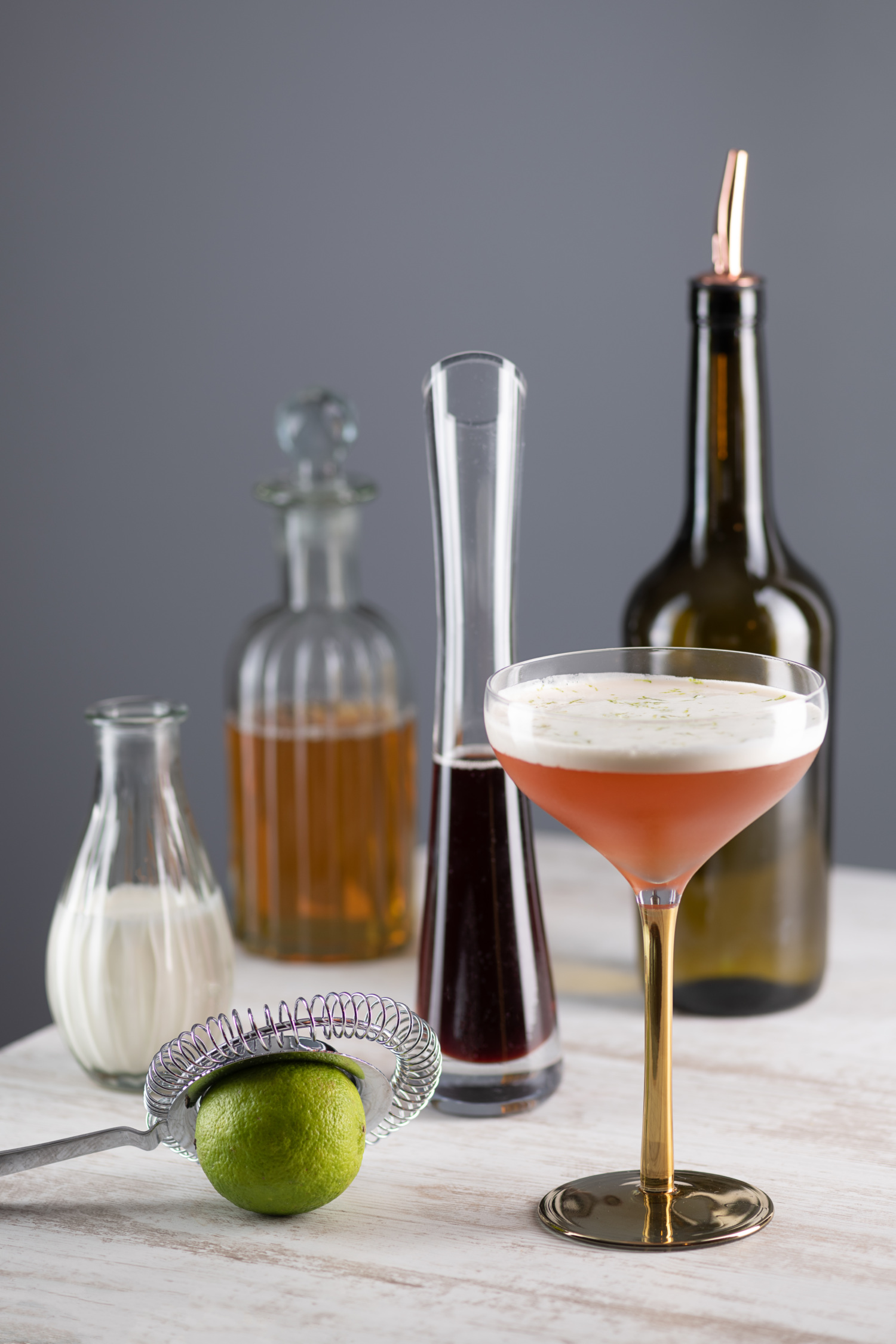 45 ml de calvados VS 10 ml de sirop d’airelles Quelques gouttes de bitter cerise 80 ml de jus de pomme Crème liquide Citron vert râpé