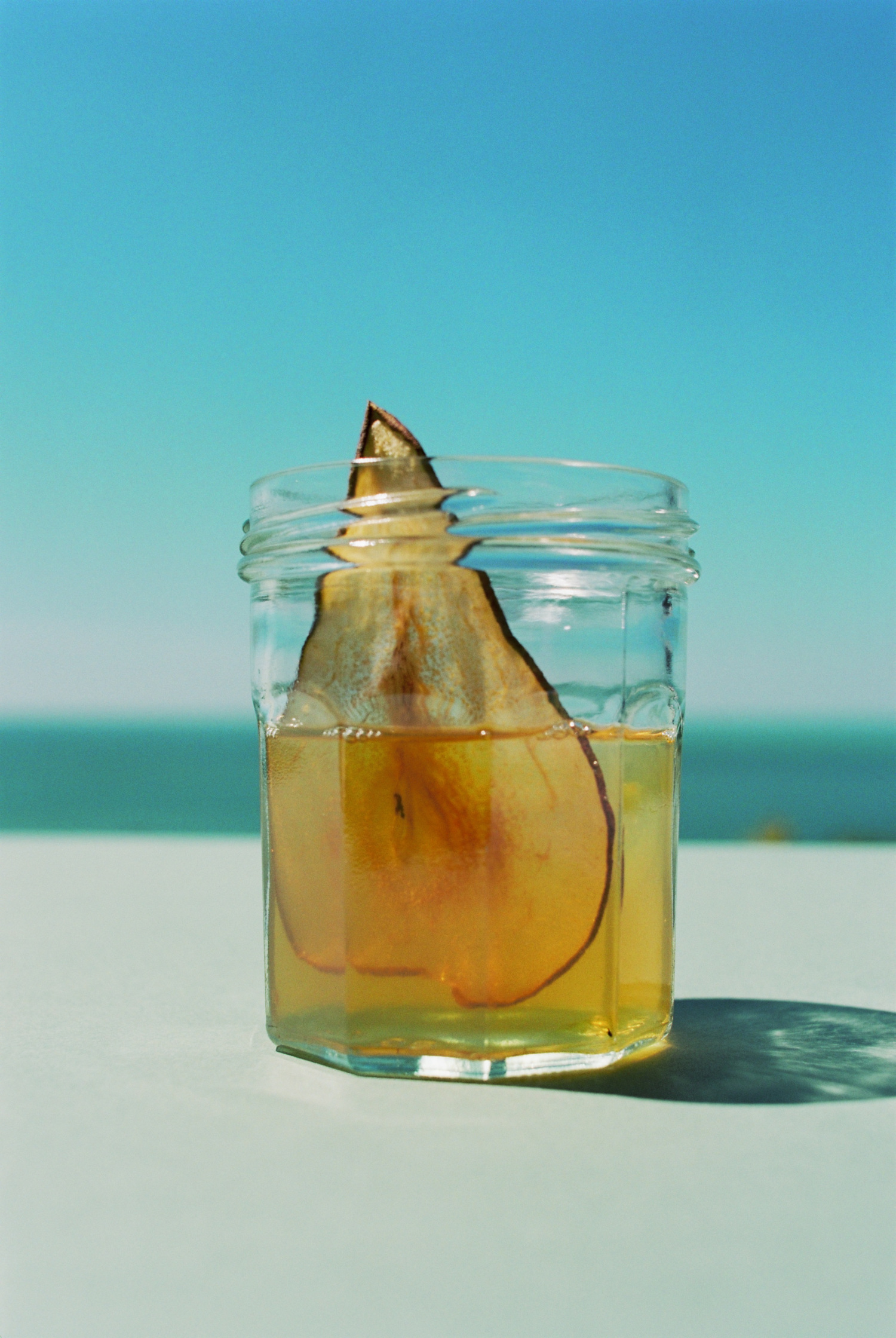 5 cl Calvados VS 2 cl Shrub (elderflower + white wine vinegar) 2 cl Granny Smith apple juice 1 cl of herbs and spices liqueur (Benedictine) Slice of pear for decoration
